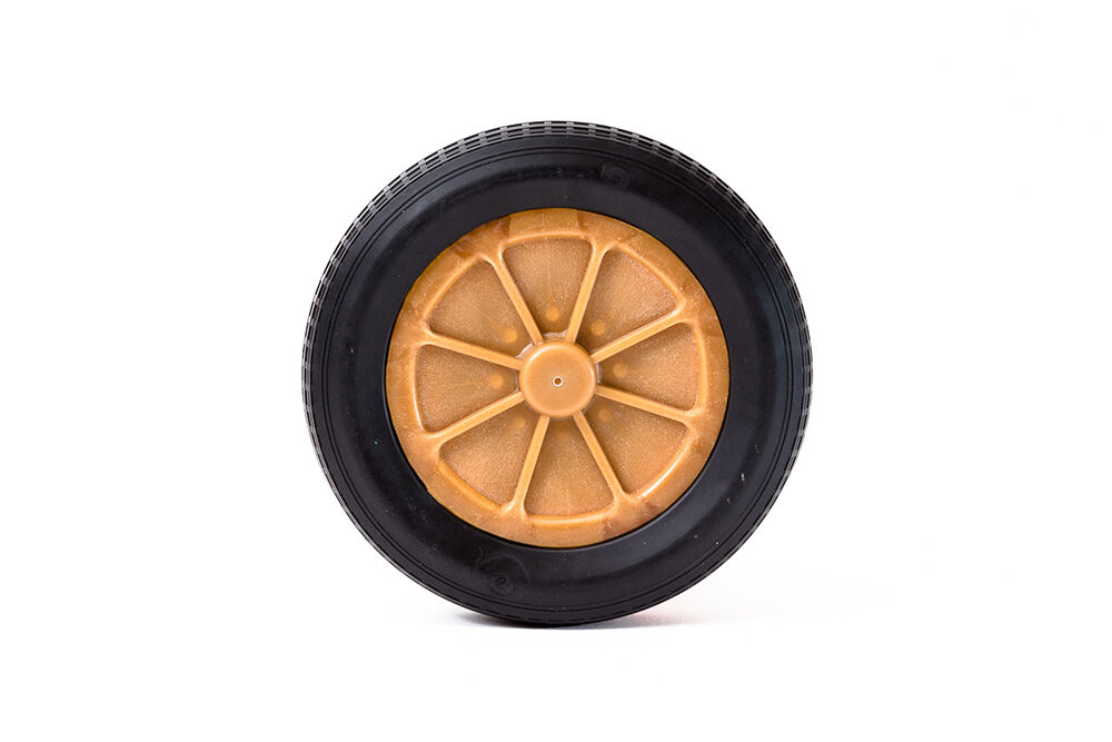 • Rodas em compósito de madeira e plástico, com robustos